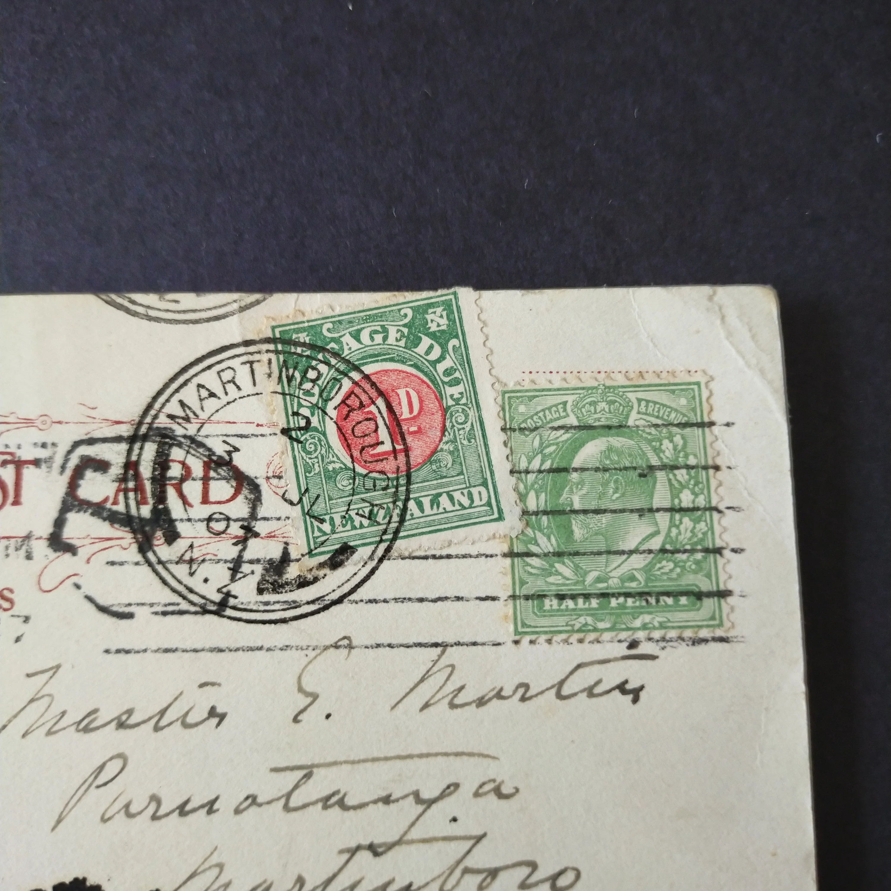 NZ New Zealand 1907 Vintage Postcard St Albans Great Britain UK To Martinborough Wellington KE7 Postage Due