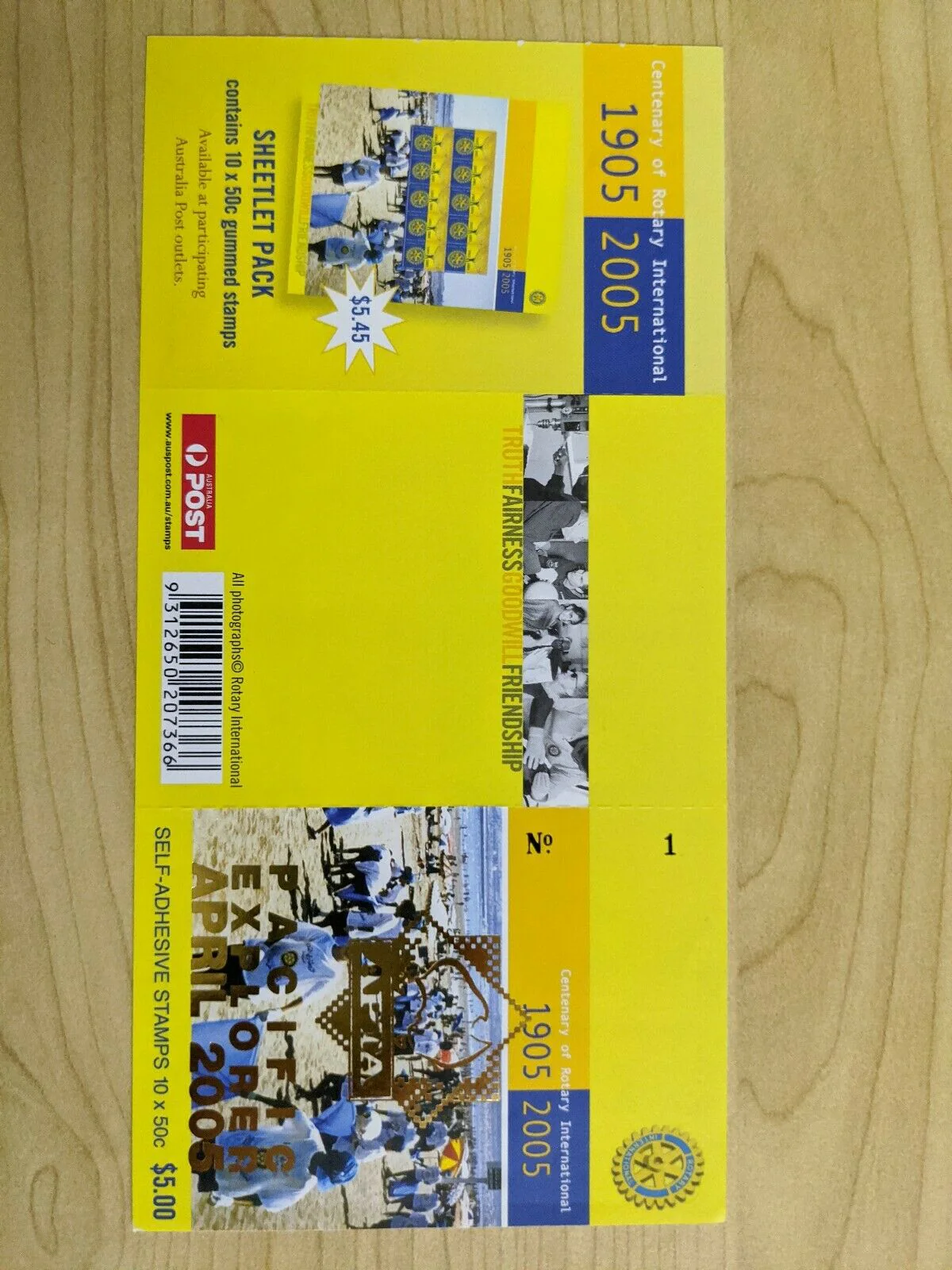 2005 Australia Rotary International 50c Stamp Booklet + Sheet Ovpt No 1