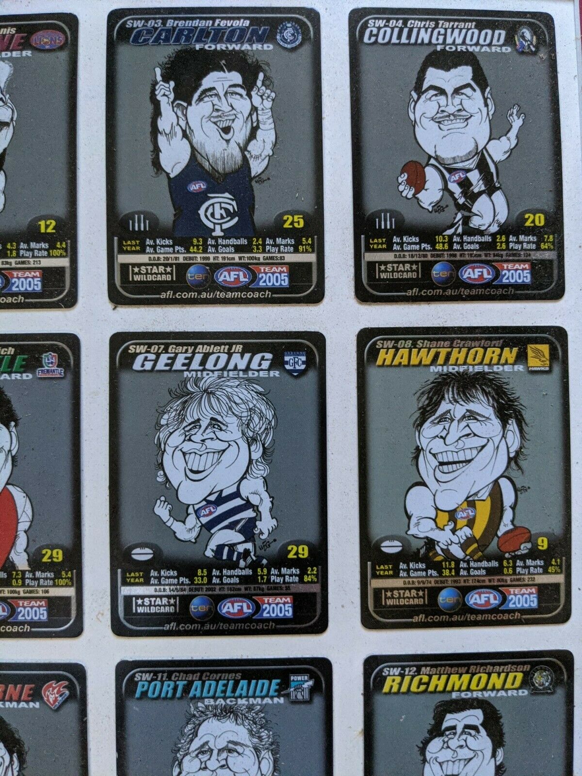 2005 Star Wildcard Set On Board Including Chris Judd Trophy Wildcard Matt Lloyd. Condition is "Used". Cards are stuck on board. Dusty and some marks. A superb set rarely seen as such. Please check photos carefully.